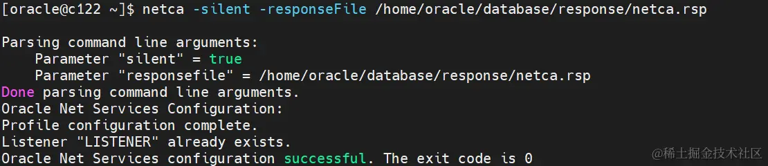 netca -silent -responseFile /home/oracle/database/response/netca.rsp