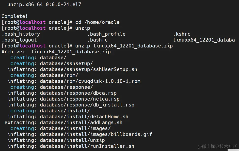 unzip linuxx64_12201_database.zip