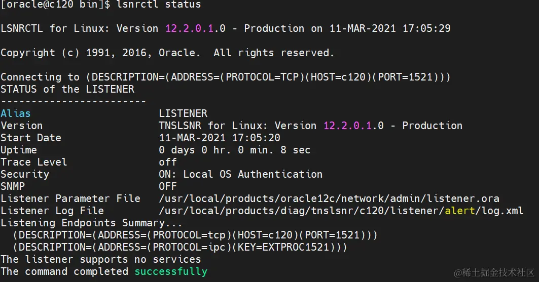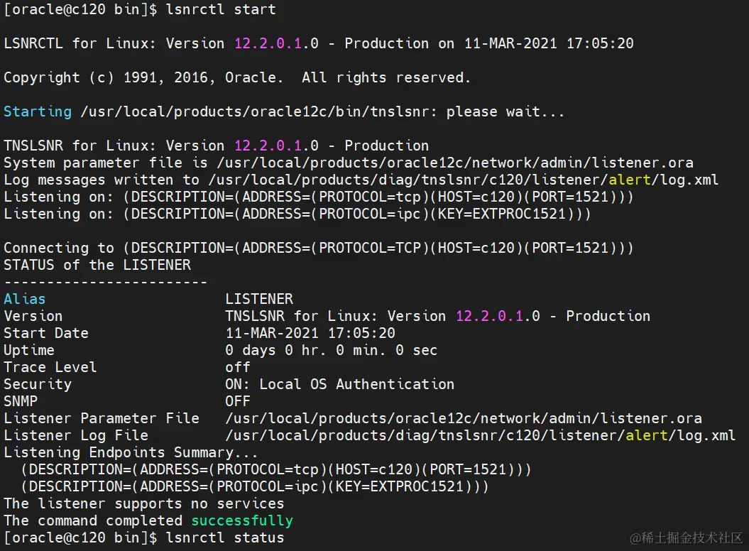 lsnrctl start