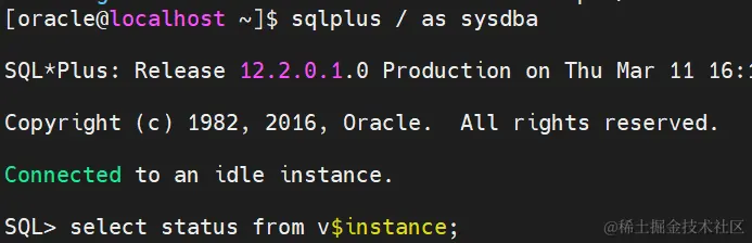 select status from v$instance; #如图数据库创建成功