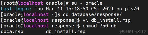 vi db_install.rsp #编辑的时候可能没有权限解决办法如 su 切换到root 对文件授权chmod -R 775 /home/oracle/database/response/db_install.rsp #chmod -R 775 绝对路径/文件