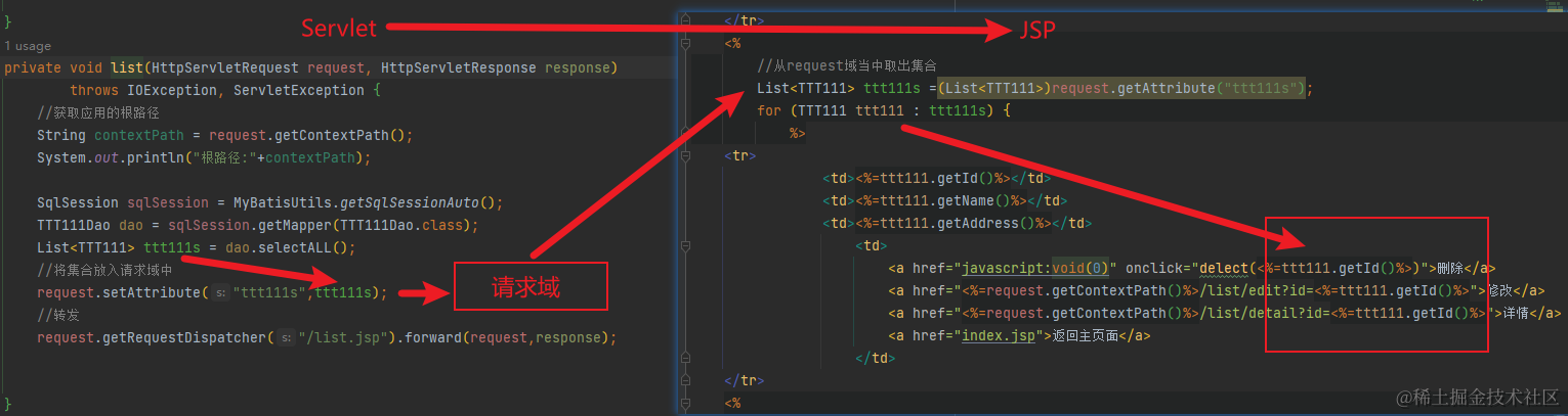 <a href="<%=request.getContextPath()%>/list/detail?id=<%=ttt111.getId()%>">详情</a>