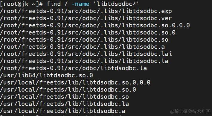 #找到libtdsodbc.so.0文件后复制其路径做个软连接