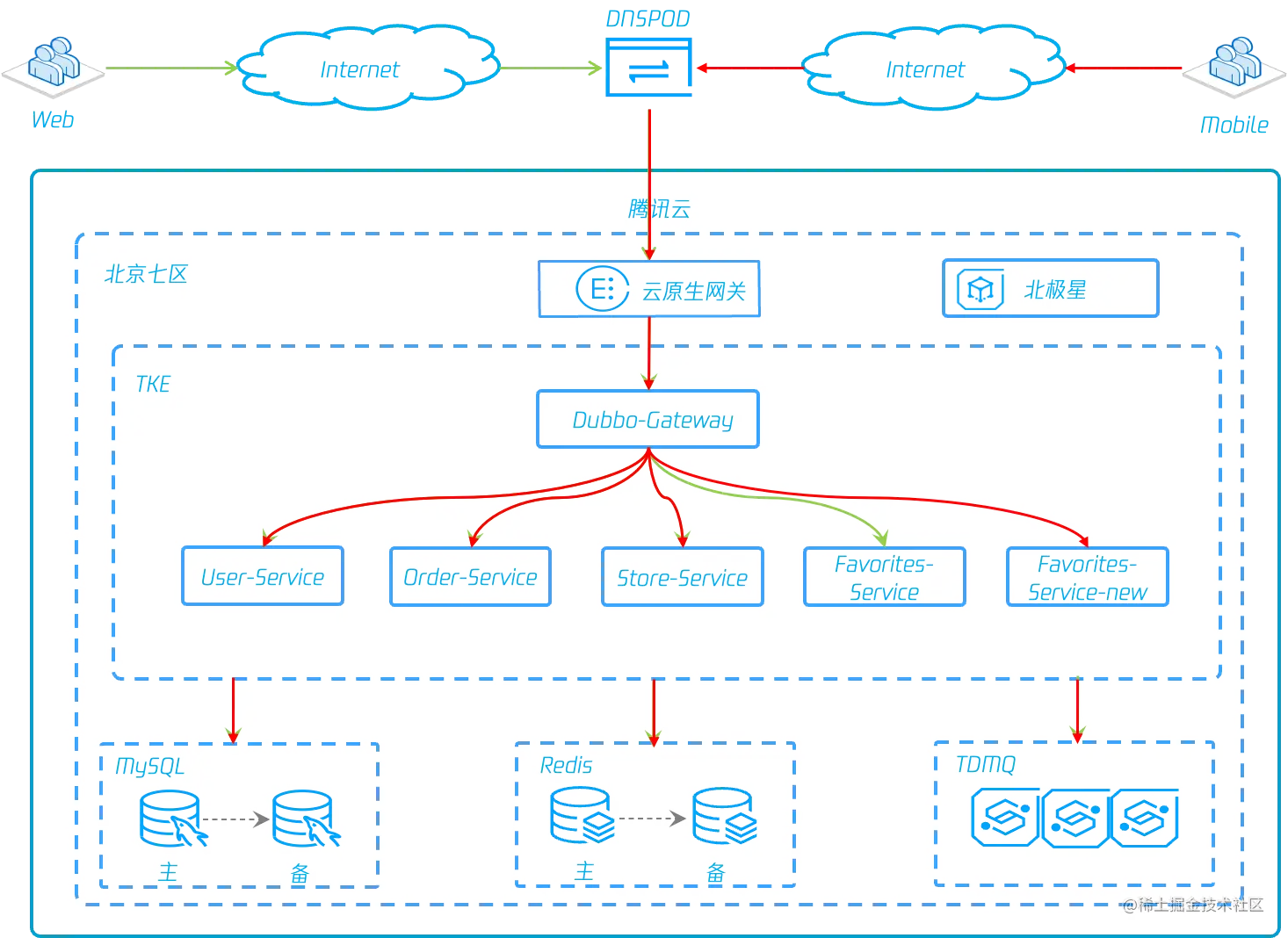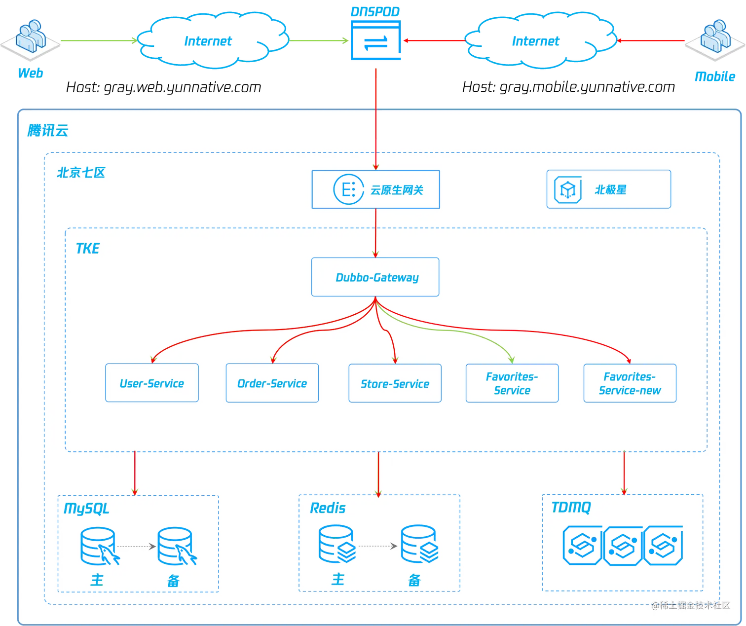 我们将应用部署在腾讯云 TKE 集群中,在实际生产中,全链路灰度对于应用的部署模式没有限制性要求,无论是 CVM 虚拟机,还是自建容器环境,都能应用此方案。
