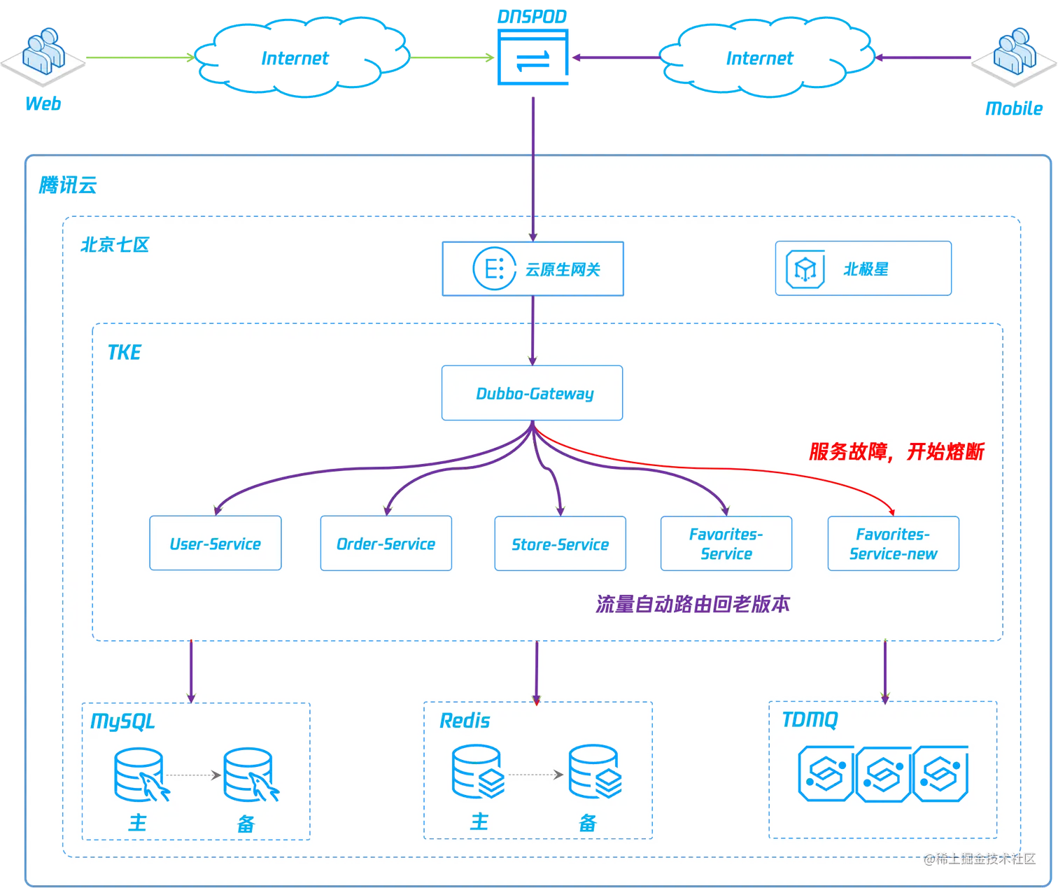 在北极星网格上配置熔断规则,配合多实例分组路由规则,实现灰度服务故障 Failover。在全链路灰度场景基础上,在北极星网格控制台加上一条熔断规则。