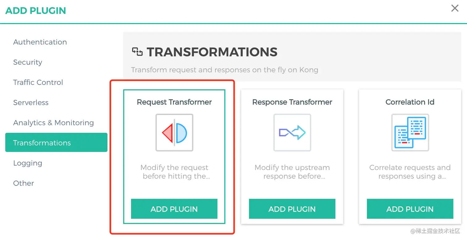 服务治理中心可以直接使用现成的 app:web 或 app:mobile 标签路由,也可以对路由请求新增染色,使用染色标签路由,优化复杂环境管理。这里我们开启云原生网关的 Request-Transformer 插件,对 qcbm-front-router-mobile 路由报文进行修改,添加 gray:true 头,使用该染色标识进行路由管理。