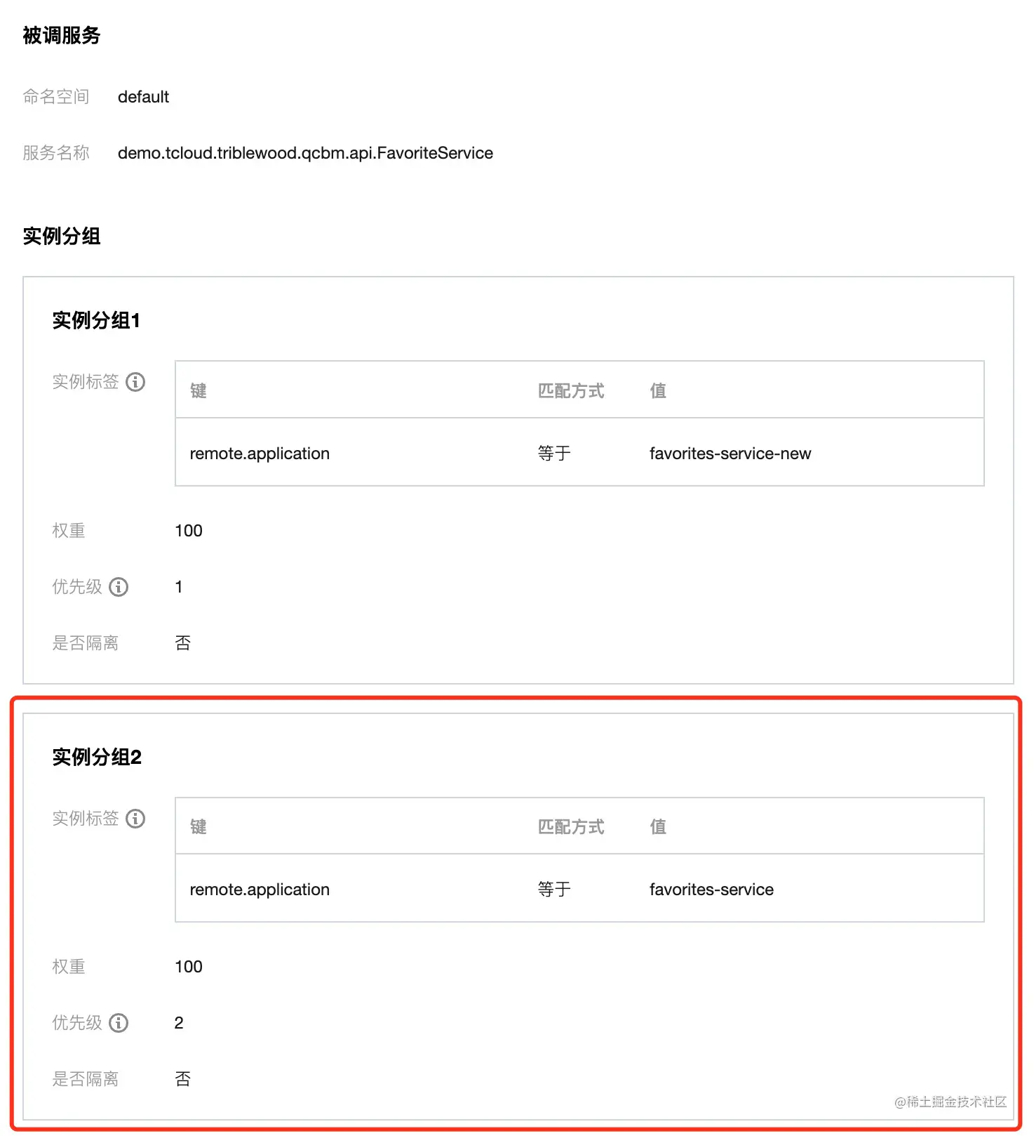 接下来,在网格灰度路由中,添加低优先级实例分组,该分组为基线实例。一旦灰度实例分组被熔断,请求会去访问基线实例分组,直到灰度服务修复,熔断关闭。