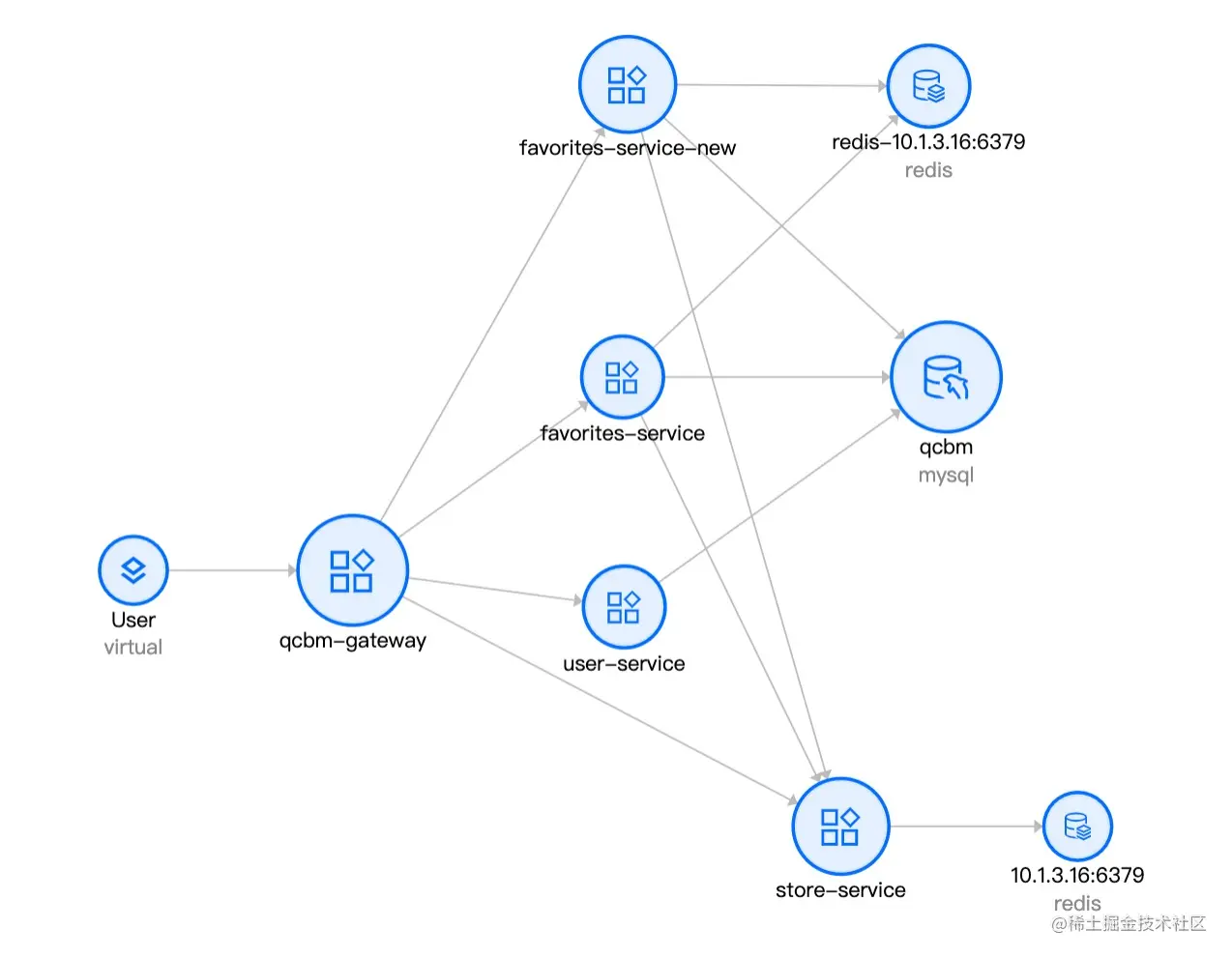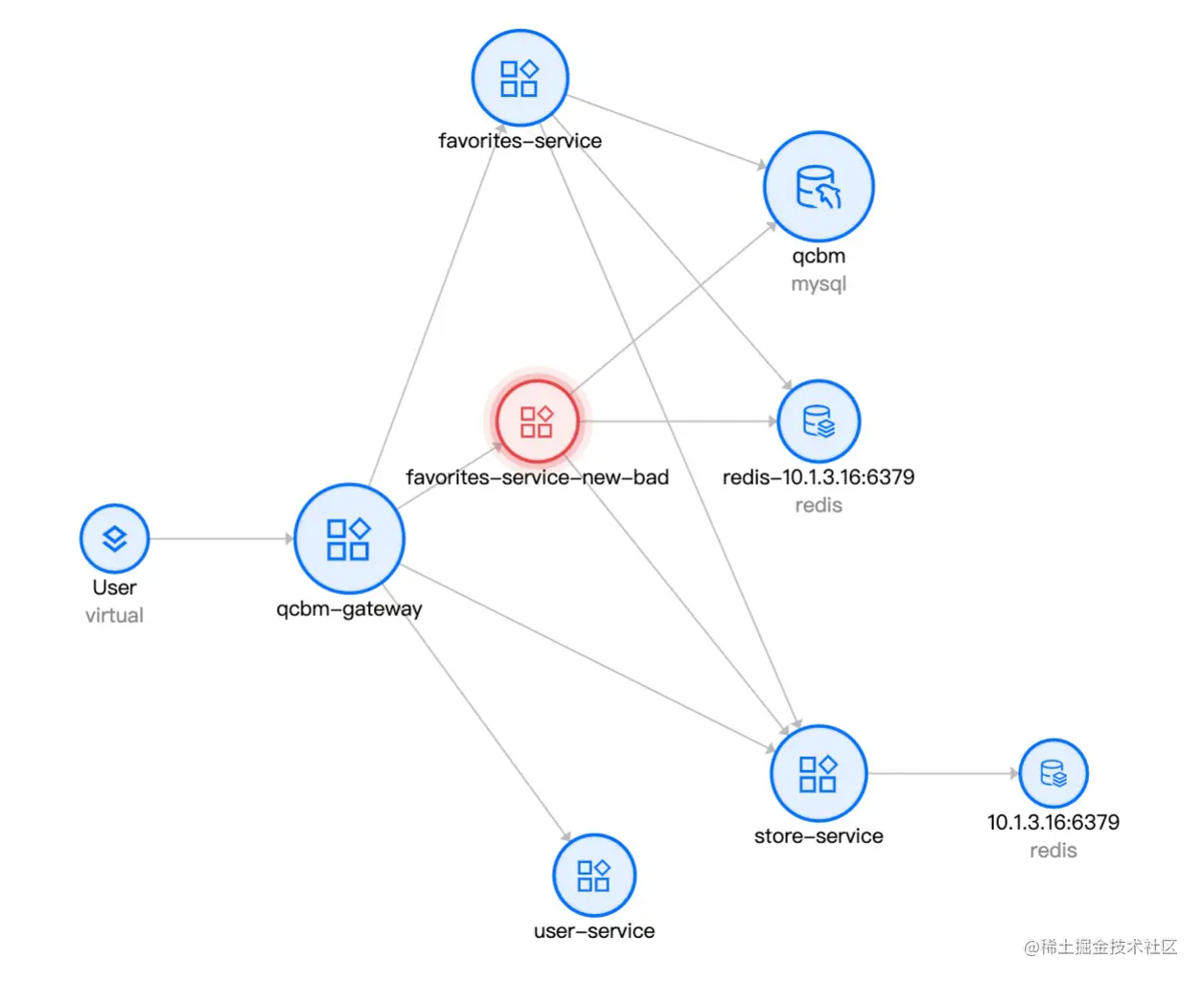 通过链路监控,可以观察到,gateway-service(基线服务)正确的请求到 favorite-service(基线服务),同时 favorite-service 正确请求到 store-service(基线服务):