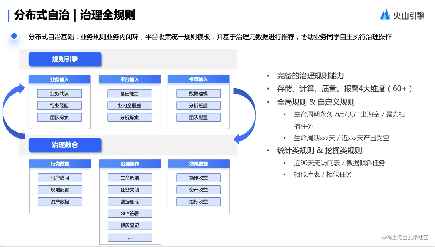 - 重视成本优化 : 基于多种规则的与完备的治理元数仓,提供低门槛的治理产品能力,快速优化存储