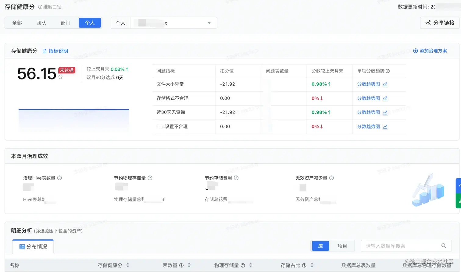 - 效果: 从21年至今,治理人员的精力彻底从”运动式“治理的模式中解放出来,更多精力会集中在监督执行与规则优化中,团队起夜率降低30%。质量保障覆盖率达到100%。双月存储优化均在20+PB。