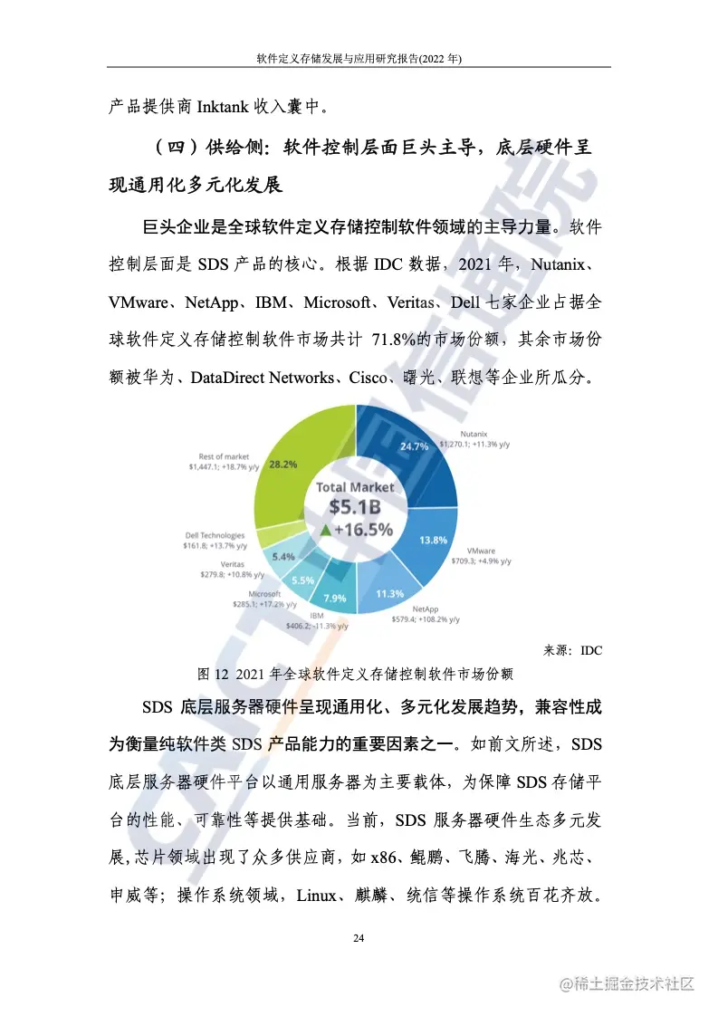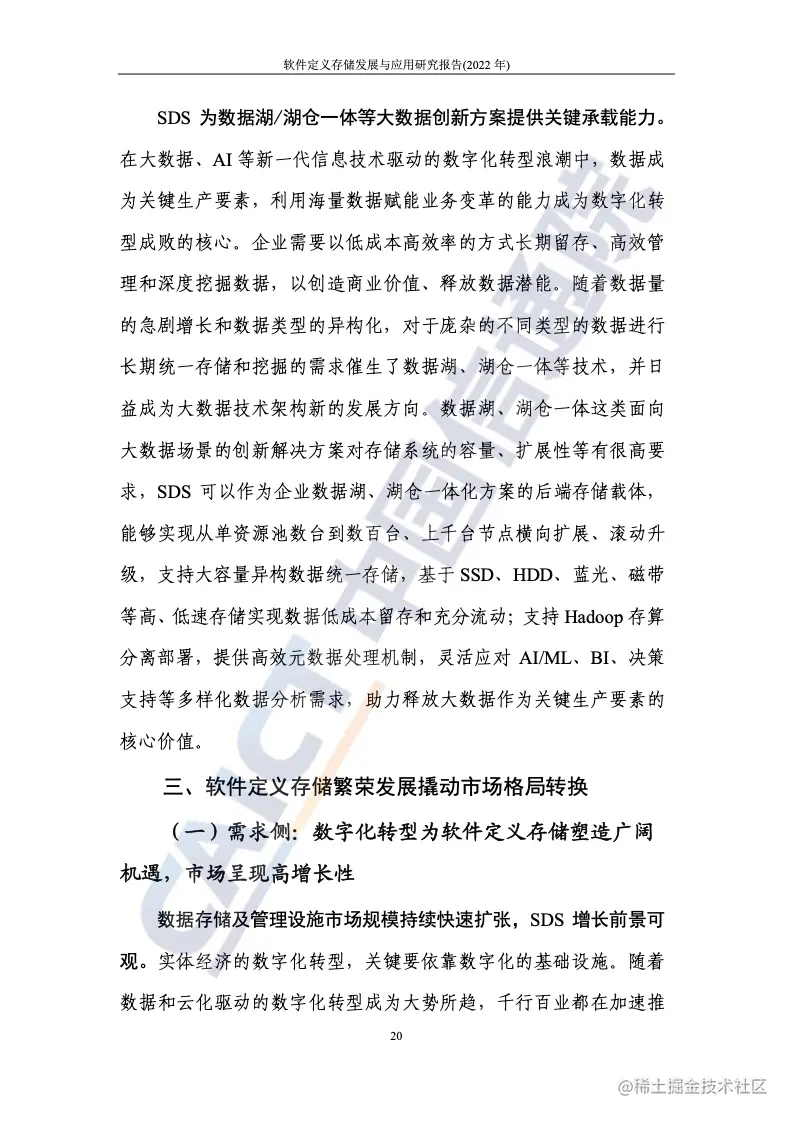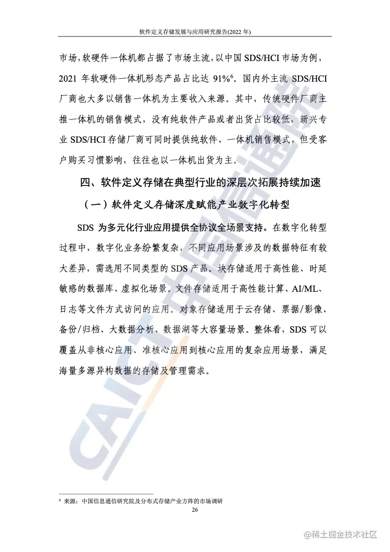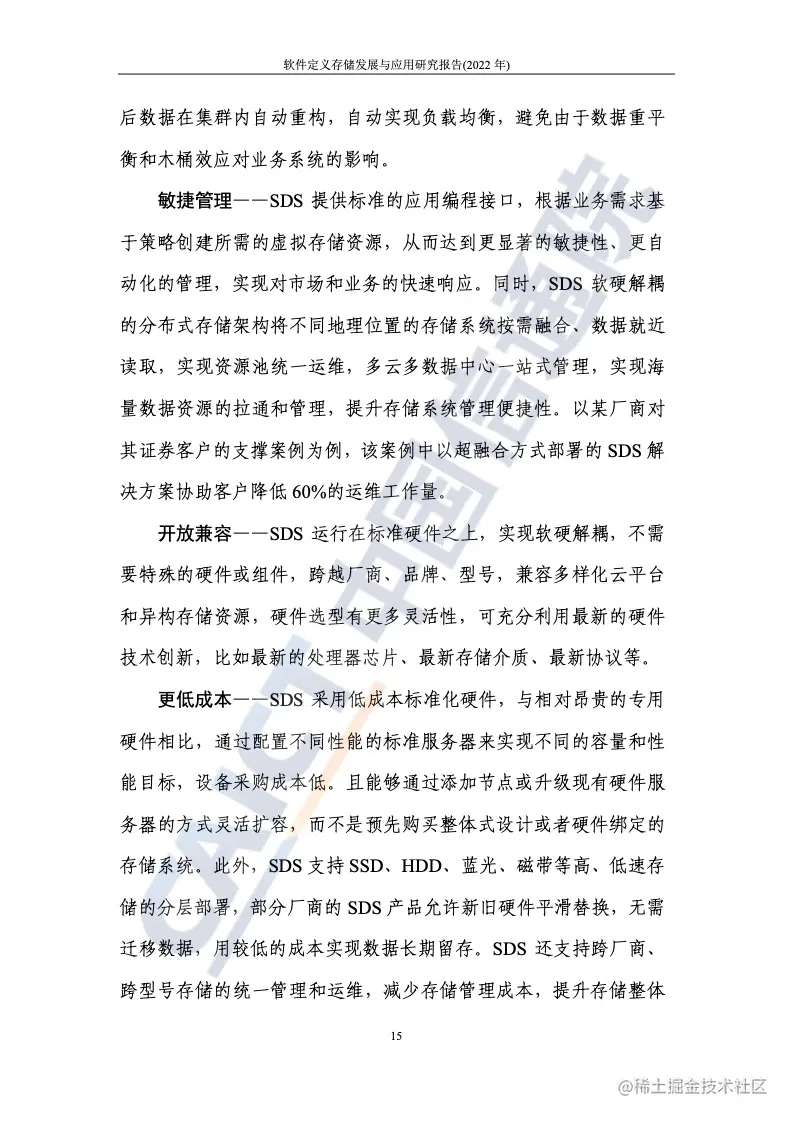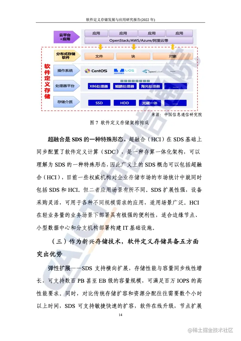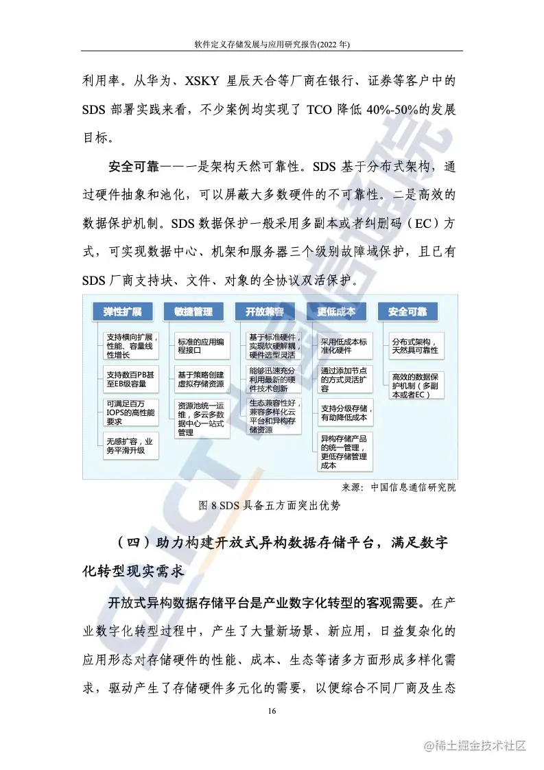 近日,中国信息通信研究院(以下简称“中国信通院”)正式发布《软件定义存储发展与应用研究报告(2022年)》,报告厘清了软件定义存储的概念内涵、技术特征和比较优势,对软件定义存储的市场态势、生态发展和赋能价值进行了分析研判,对其发展前景进行了展望,并对推动软件定义存储高质量发展提出有关建议。