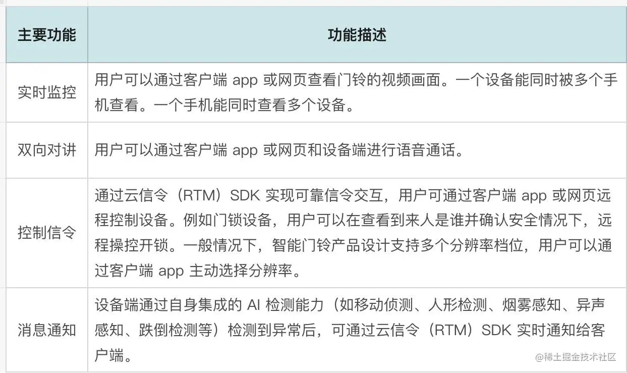 智能门铃 PaaS 方案支持以下功能: