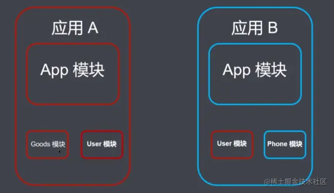 3、utillty modules:公共模块应用,非渲染组件,可以在不同应用之间共享JavaScript模块和组件。