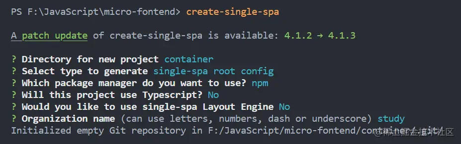 1、npm install create-single-spa@4.1.2 -g