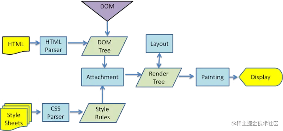 DOMCSSOM构建完毕后,浏览器引擎会结合起来创建一个称为渲染树 (render tree) 的树状结构。渲染树上包含了每个元素的相关信息,例如样式和内容。