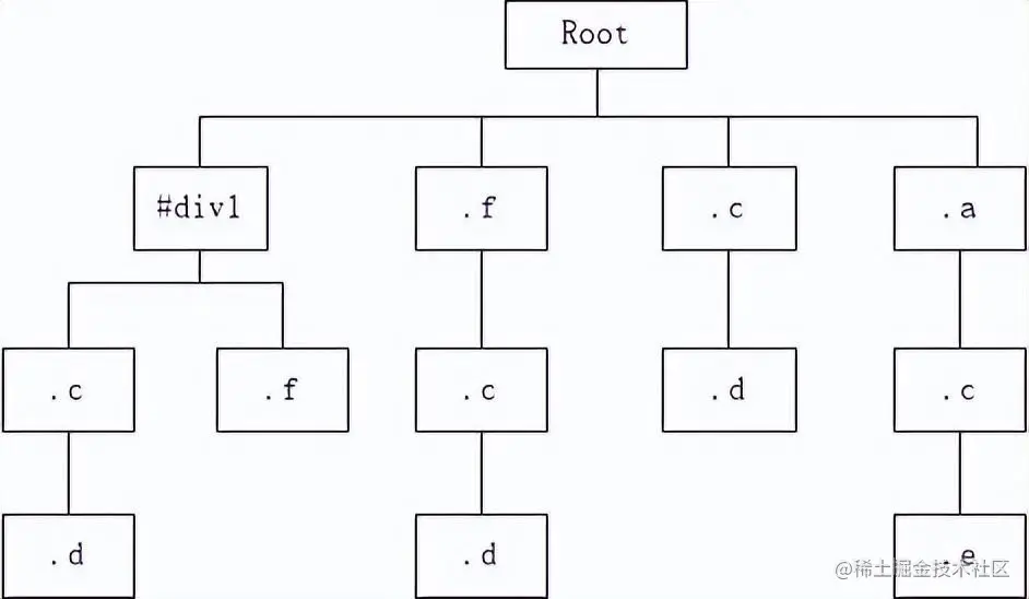 首先,#div1 .c .d {} .f .c .d {}.c .d{}这三个选择器里面都含有 .c .d{}这么一个公用样式, 所以哪怕是我们的DOM节点明确了是在#div1下面都必须对style rules进行全部的匹配查找, 这样一来基本上可以说是每一个DOM节点都必须完全遍历一遍style rules, 不然搞不好就会漏掉一些公用样式之类的,所以想着将层级写的更加详细就能去掉很多不对应的CSS选择器的索引路径的就不要想了, 不管你写的多细,你总是需要把整个style rules都遍历一遍,不然万一漏掉了某个公用样式不就思密达了?