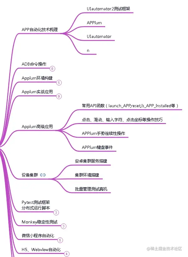 移动自动化测试主要也是通过工具和代码的方式实现。比如常见的有Python/Java+appium。移动自动化除了哟啊掌握一门编程语言外,还需要学习移动测试的流程步骤,移动基本功能的和web端的基本类型。