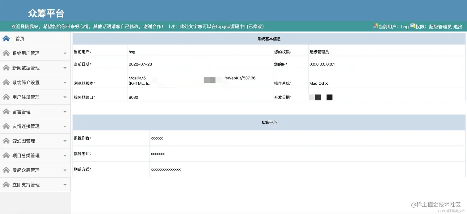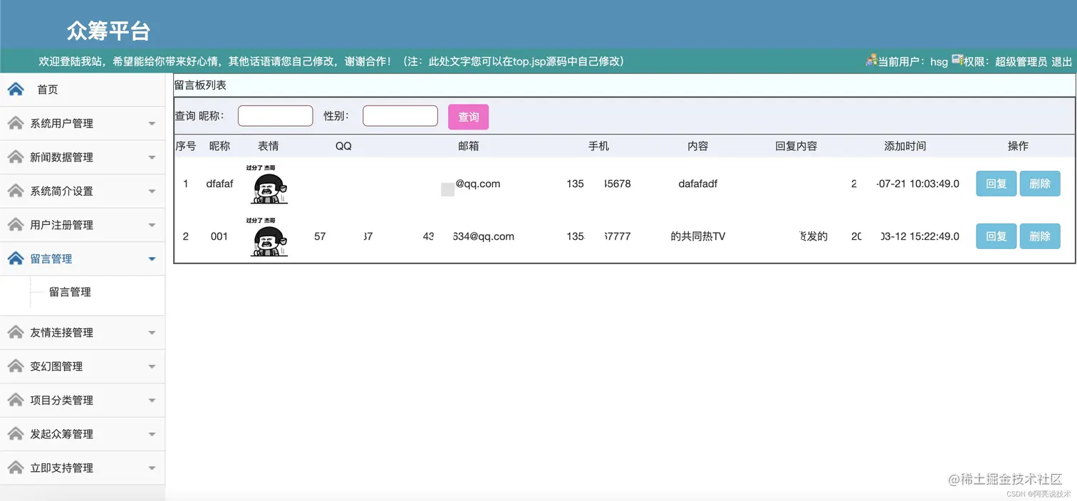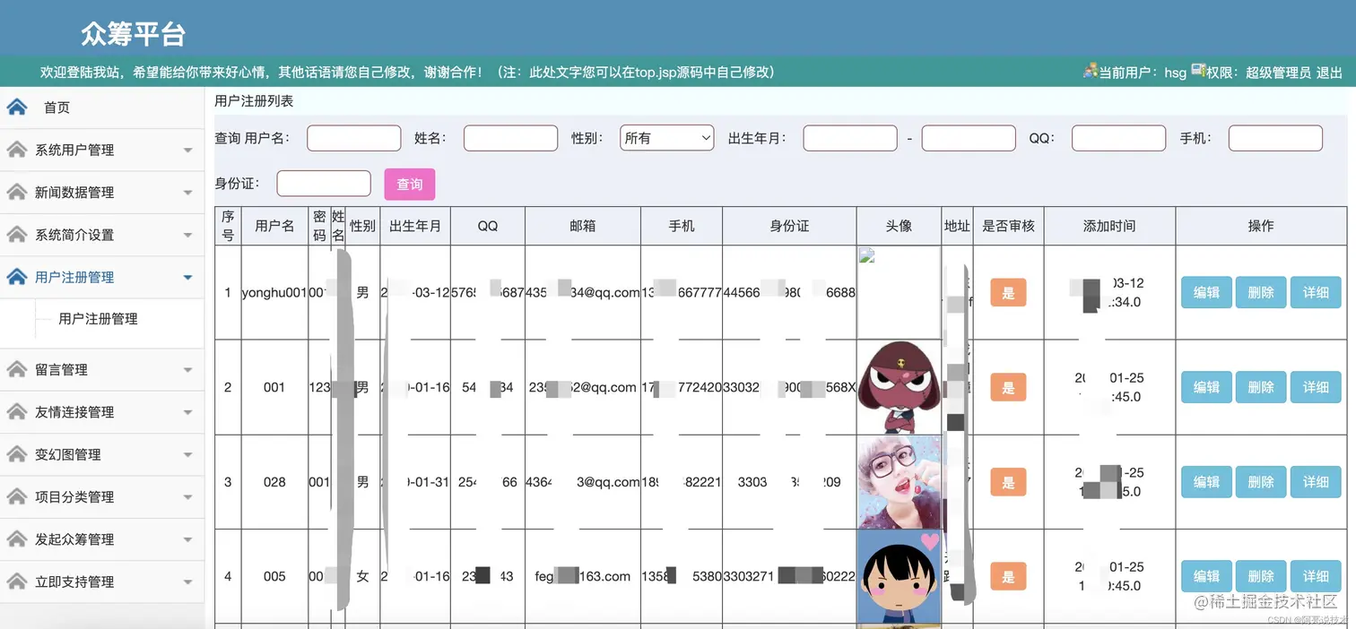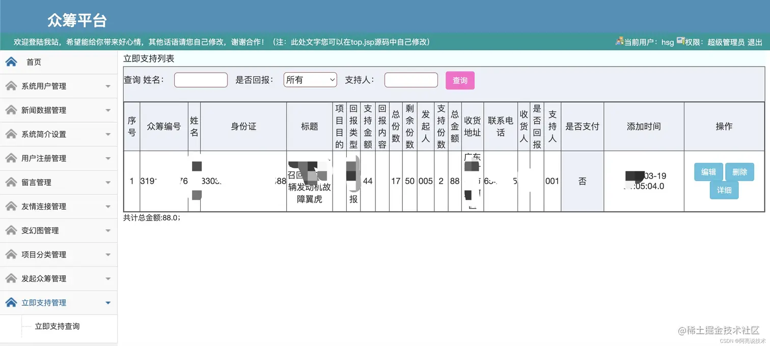 友情链接管理 图片轮播管理 项目分类管理 众筹项目管理 立即支持管理
