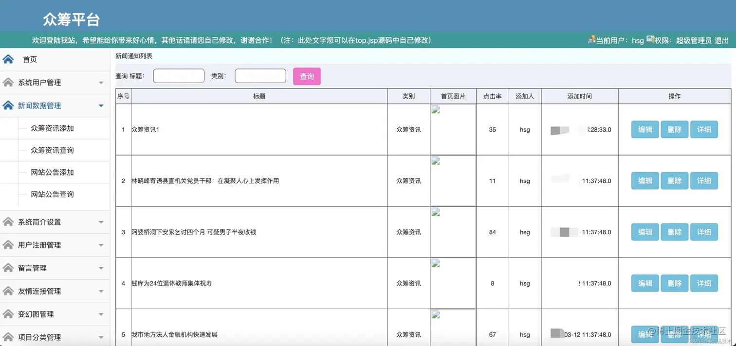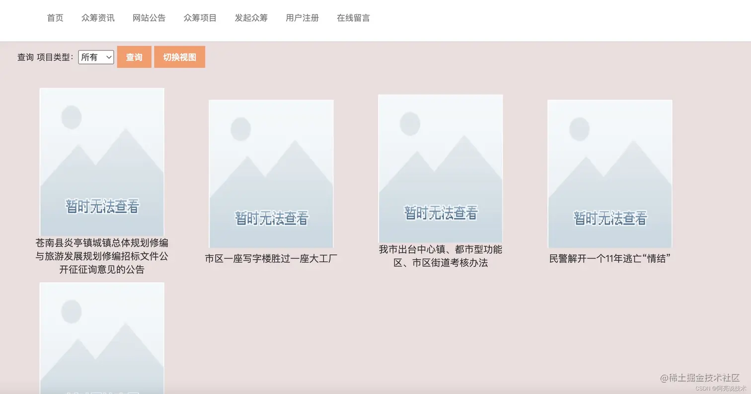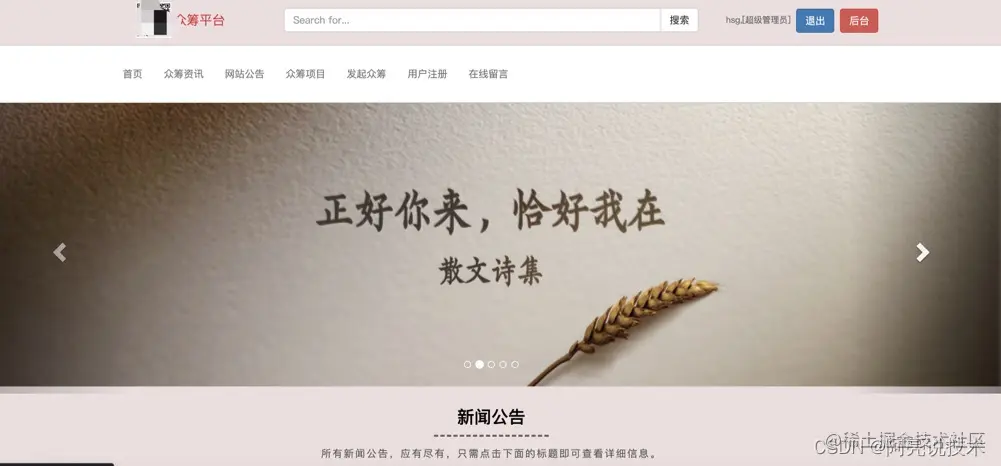 首页 登录注册 图片轮播 新闻公告 众筹资讯 网站公告 众筹项目 发起众筹