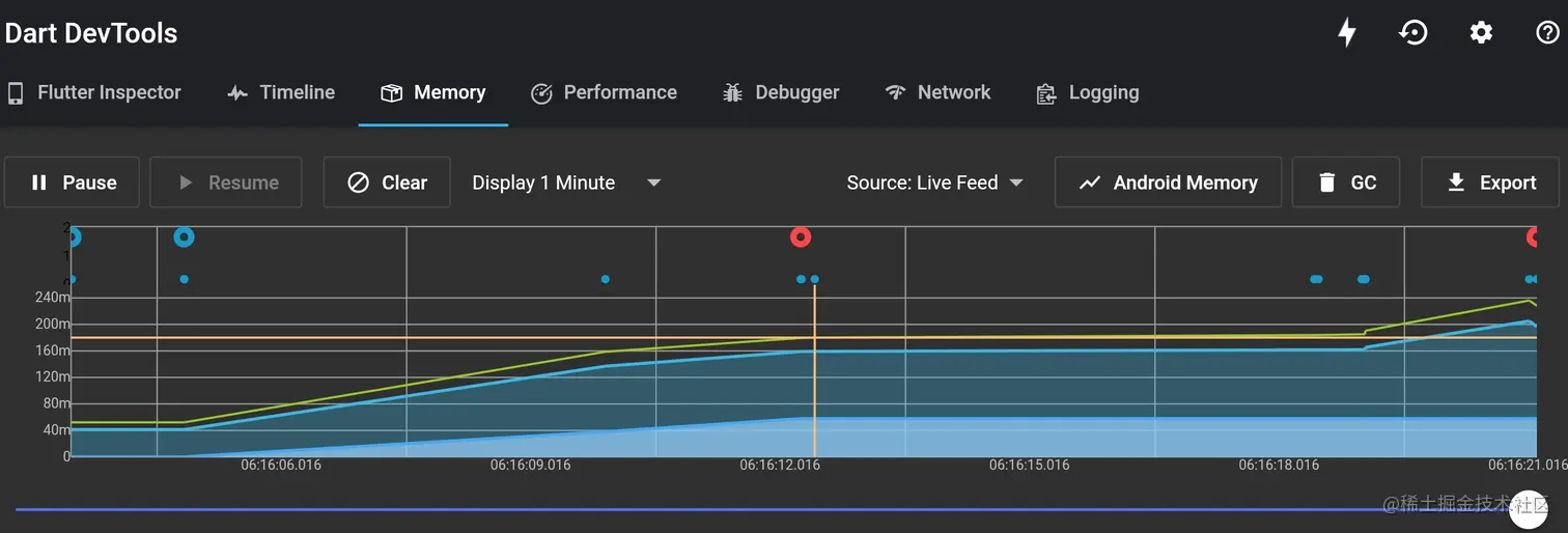 关于如何判断优化后内存有没有变化,可以通过Dart DevTools的Memory选项卡来完成,当你销毁一个FlutterEngine后可以通过GC按钮来触发一次GC来查看内存的变化。