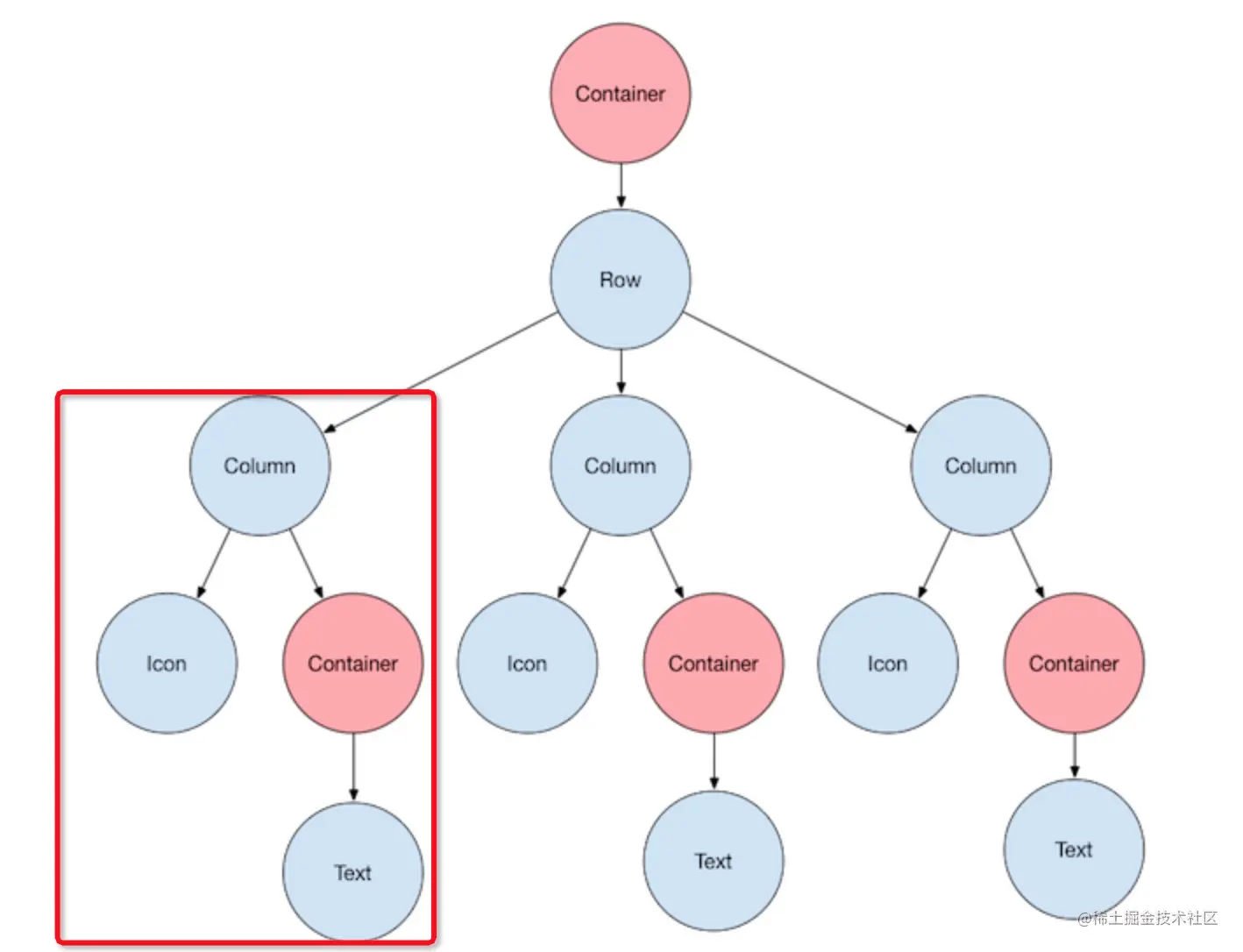 - 影响性能:我们在 State 上调用 setState()时,所有build()中的 Widget 都将被重建;因此build()中返回的Widget树越大那么需要重新建的Widget越多,对性能越不利;见下图: