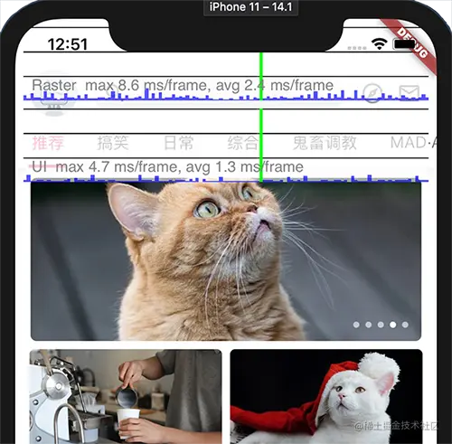 借助Flutter Performance我们对课程项目的首页进行帧率检测: