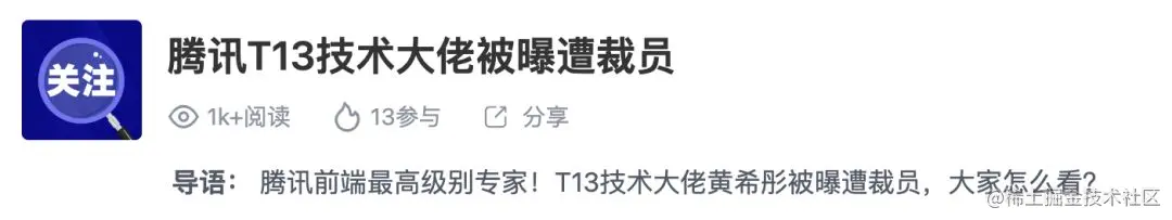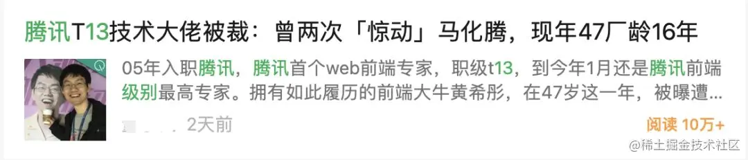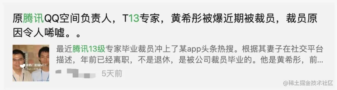 最近被一条新闻刷屏了:腾讯13级专家被裁。