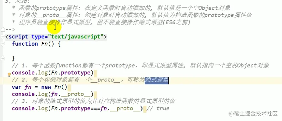 2)原型东西有一个属性constructor,它指向函数对象;