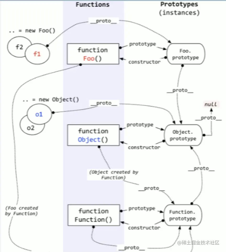 //Object 是实例,F是构造函数,有: