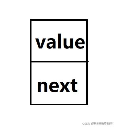 图中所示的为链表的一个节点,value是这个节点的所存储的数据值,next为下一节点的地址。