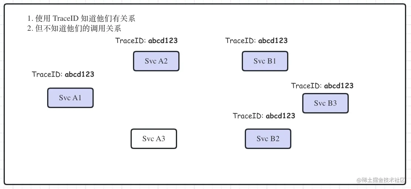 业务还是除了问题, 这次排查过程相比上次就轻松多了, 但是依然发现了一些 困惑 的问题。 虽然能从日志时间看到服务的调用顺序, 但是并不知道他们之间的调用关系, 没办法有效的把他们组织起来。