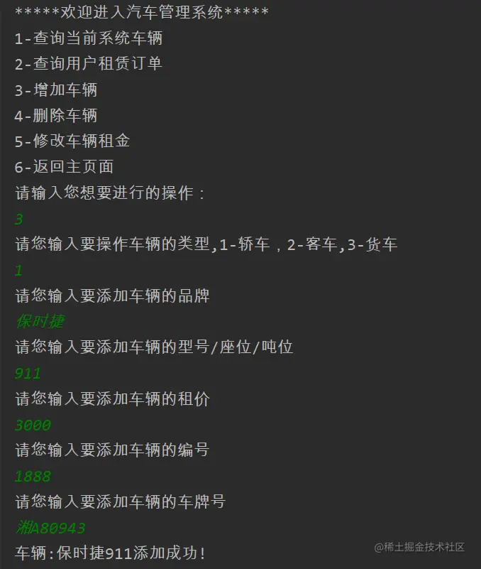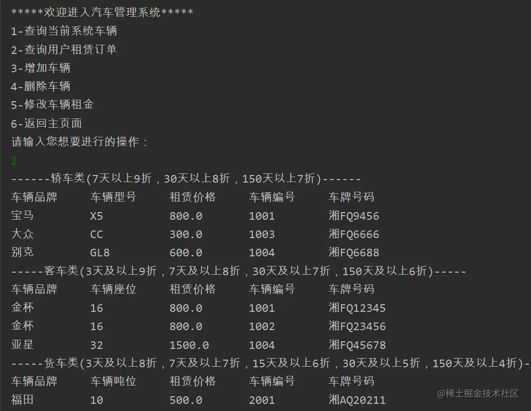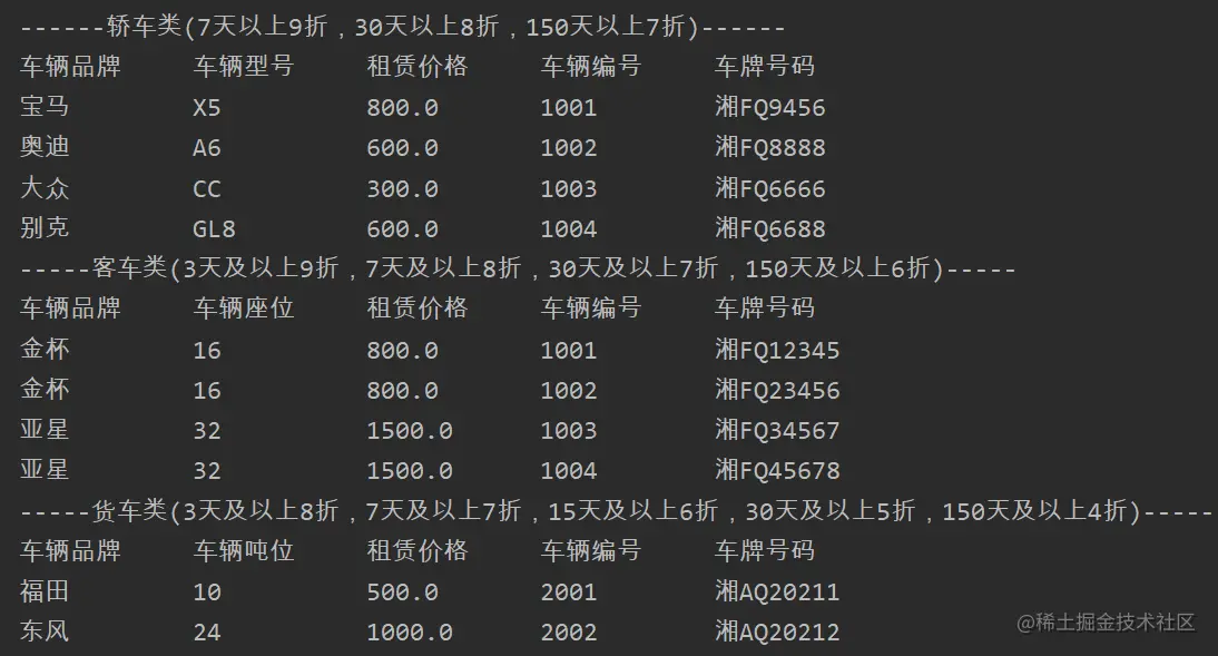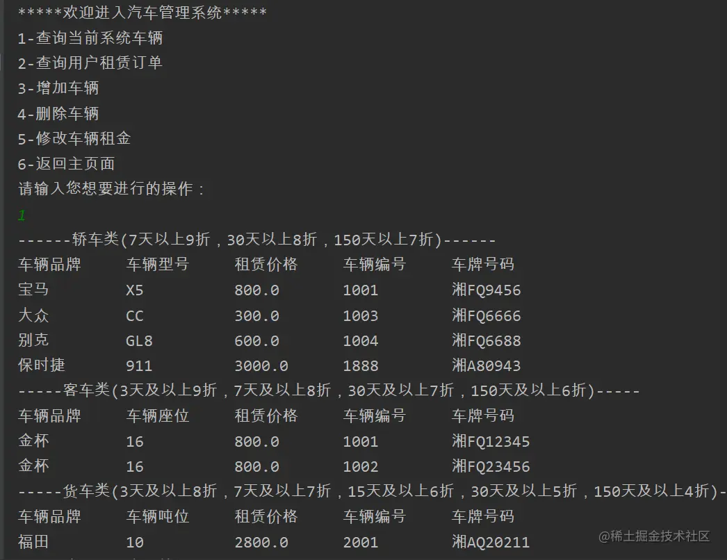 }return new Truck(brand, model, price, id, license);//返回一个新的轿车对象