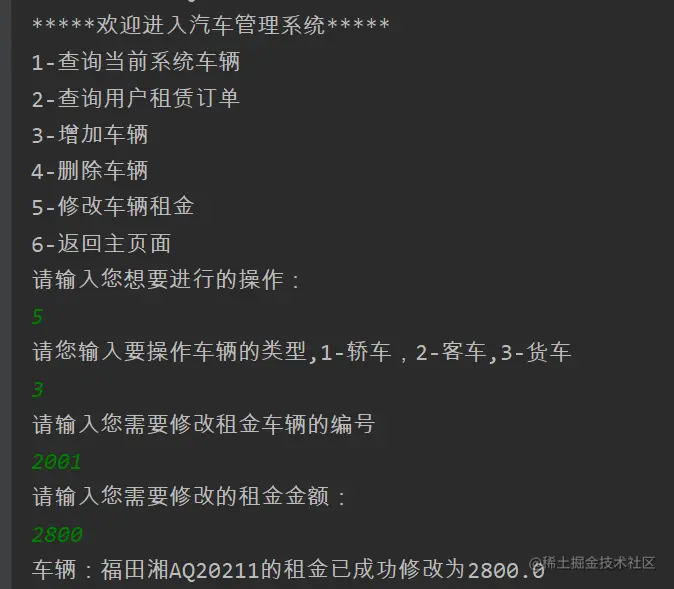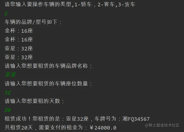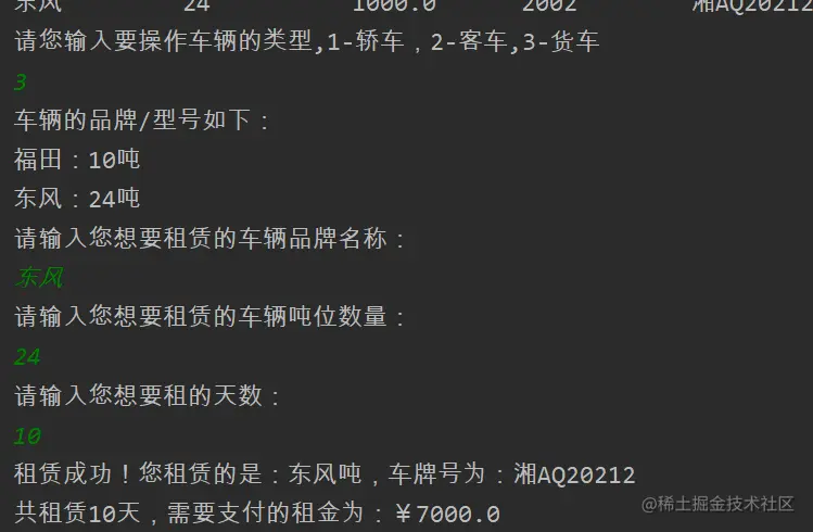 truck.setPayMoney(truck.RecentFee(truck.getDays()));//计算租车费用并存入轿车对象