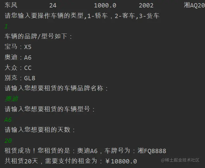 System.out.println("租赁成功!您租赁的是:" + truck.getBrand()