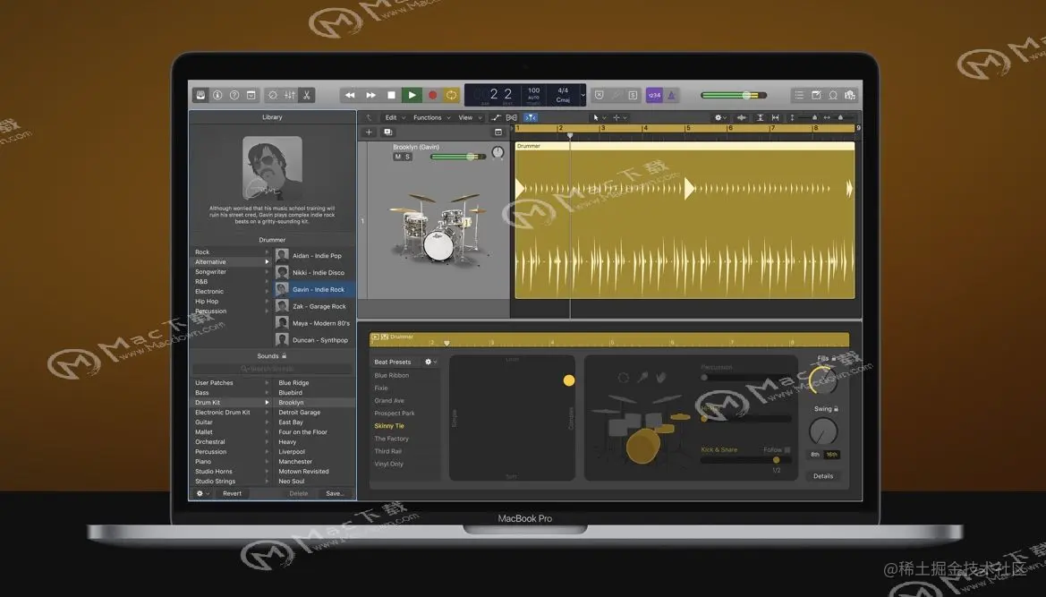 使用鼓手(虚拟演奏者及节拍制作人)来创建逼真的原声、电子音乐或嘻哈鼓类轨道