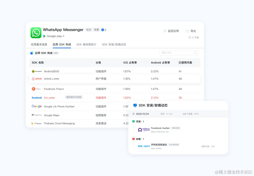 深谙云技术底层的何李石,并没有撒大网式的胡子眉毛一把抓,而是「四两拨千斤」地从 SDK 单点突破挖掘 App 冰山下的信息,因为开发者都是通过 SDK 接入云的。