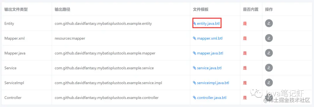 - 输出配置: 对需要生成的相关代码,比如Entity、Mapper、Servcie、Controller等代码模板信息进行配置,用于在转换时调用。