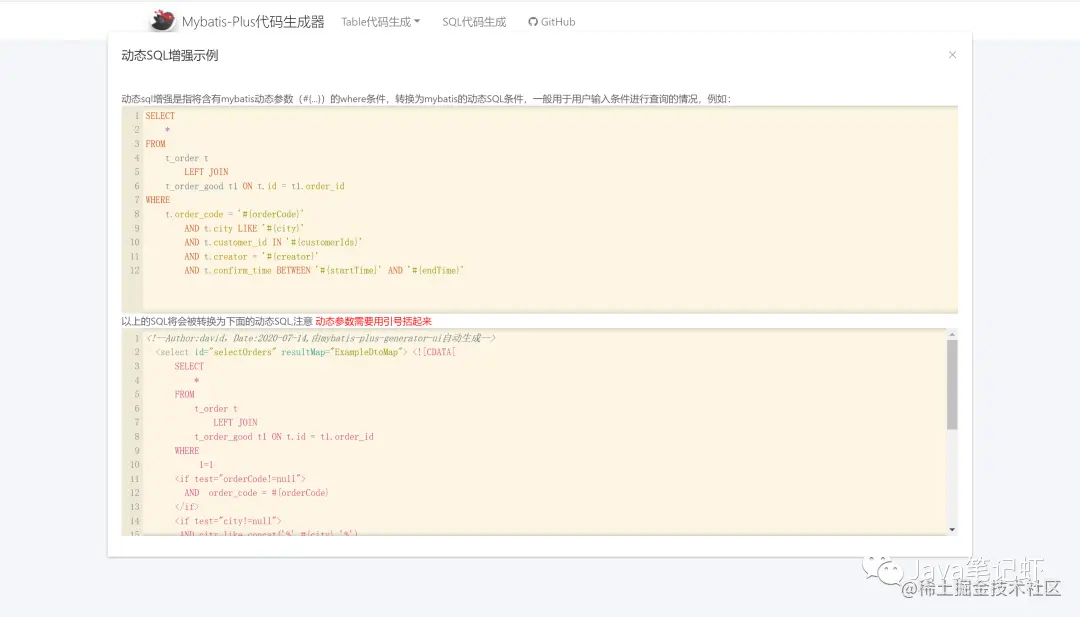 通过输入查询SQL,可自动在Mapper(Xml及Java)中生成对应的查询方法,DTO对象和ResultMap(结果集映射配置)