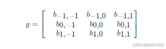 以上公式有一个特点,做乘法的两个对应变量a,b 的下标之和都是(u,v),其目的是对这种加权求和进行一种约束,这也是要将矩阵g 进行翻转的原因。上述计算比较麻烦,实际计算的时候,都是用翻转以后的矩阵,直接求矩阵内积就可以了。