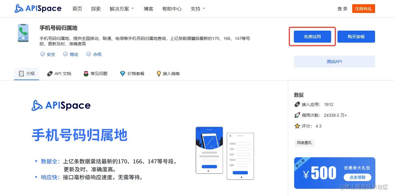 说到要去查询手机号码归属地的这个功能,那么手机号码归属地查询API就是必不可少的。APISpace 的 手机号码归属地查询API,APISpace 的 手机号码归属地API,可根据手机号码查询其省市区、运营商区号行政区划代码等信息。上亿条数据囊括最新的170、166、147等号段,更新及时、准确度高。注册登录 APISpace 即可领取免费调用次数。