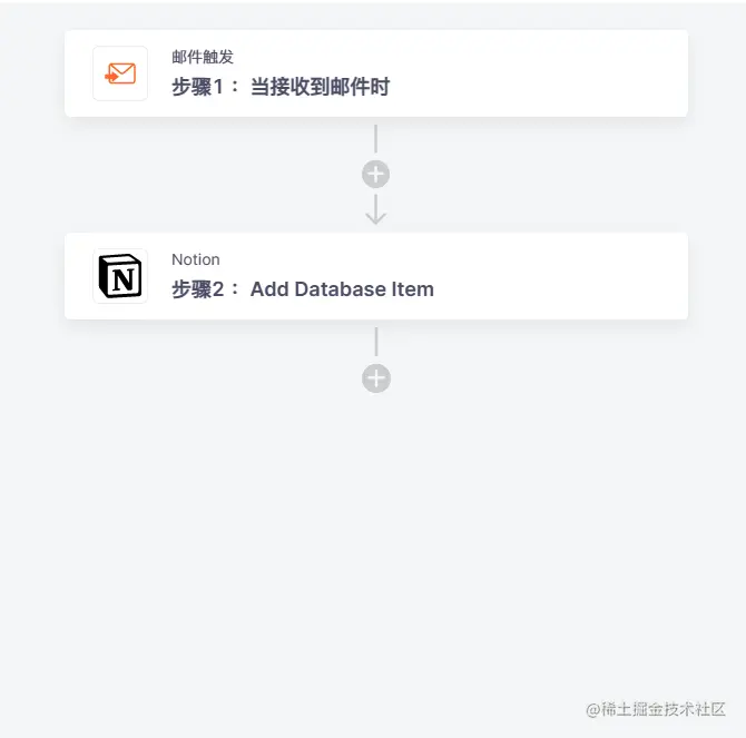 现在通过集简云搭建一个自动化流程(如下图所示),每当接收到新邮件时,自动同步到Notion中记录存储。无需再单独花费时间整理邮件的附件内容,大大提高工作效率。(PS:这里使用的邮件触发是集简云的一款内置应用,可以自动集成163、网易、qq等多个邮箱到一个应用上进行触发)