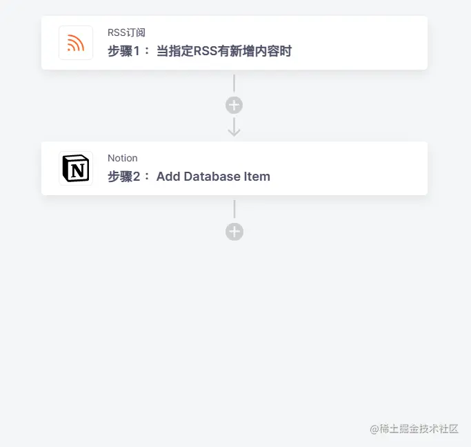 现在通过集简云搭建一个自动化流程(如图所示),即可实现每当RSS订阅有新增内容时,可以自动同步信息到Notion中创建事项,无需再一直紧盯RSS订阅源查看,减少在多个应用间来回切换的时间,大大提高效率。