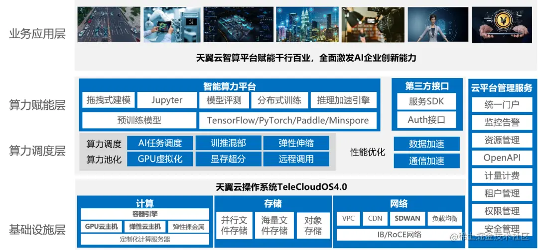 具体来看,天翼云智算平台主要有以下四个方面的差异化优势: