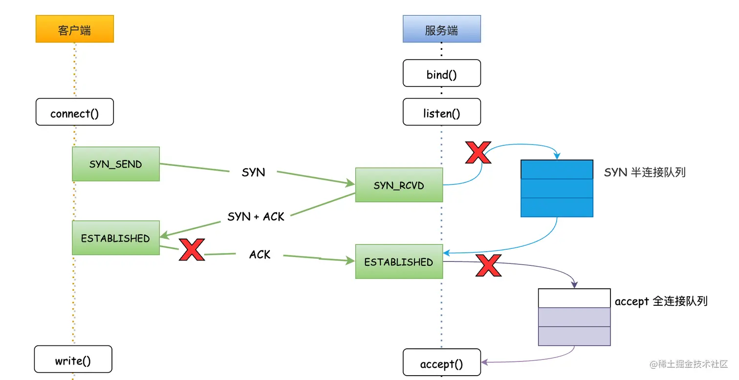 当半连接队列或全连接队列满了时,服务器都无法接收新的连接请求,从而导致客户端无法建立连接。