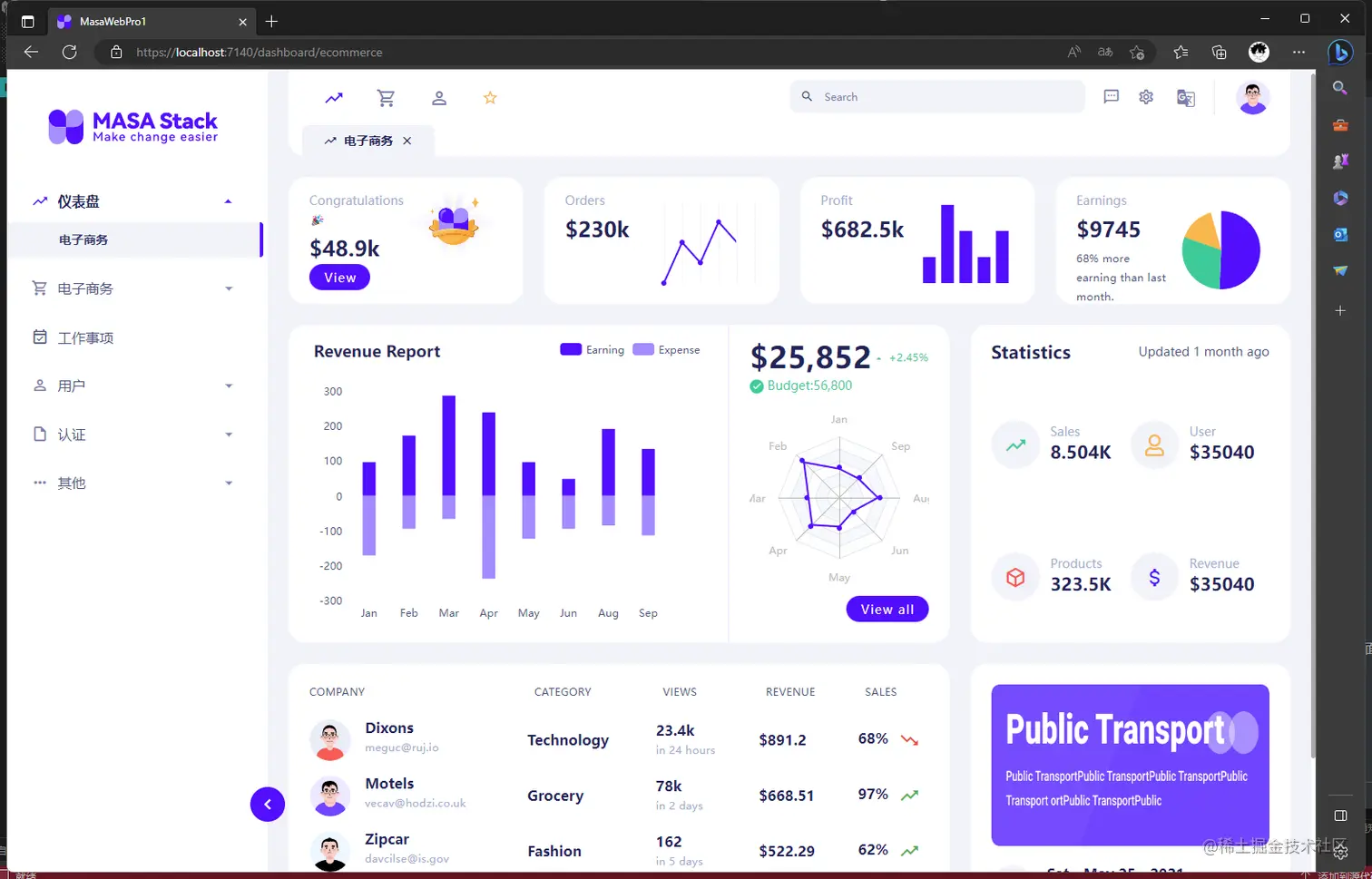 这个是我目前使用到MasaFramework的项目,Web是将Pro的模板嵌入进来,并进行修改,当前项目还在完善,这也是我第一个接触MasaFramework实践的项目,因为符合我需要的,体积小,依赖少。