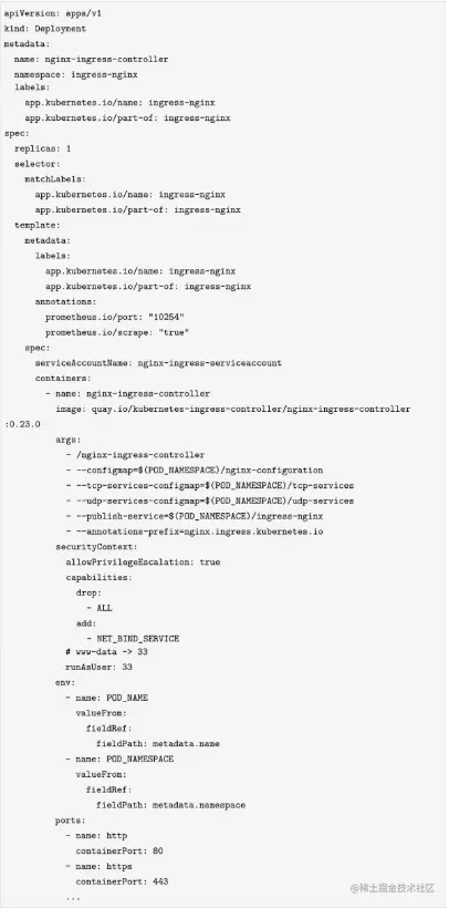 Nginx Ingress Controller的Deployment配置文件如下所示: