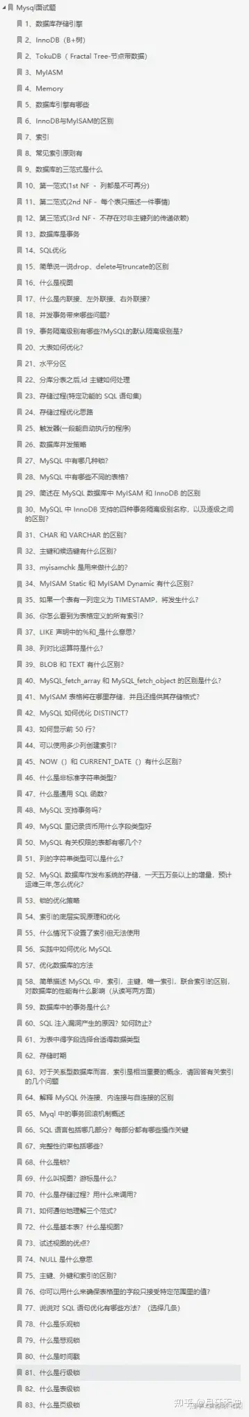 - Mysql 面试题(78 道)