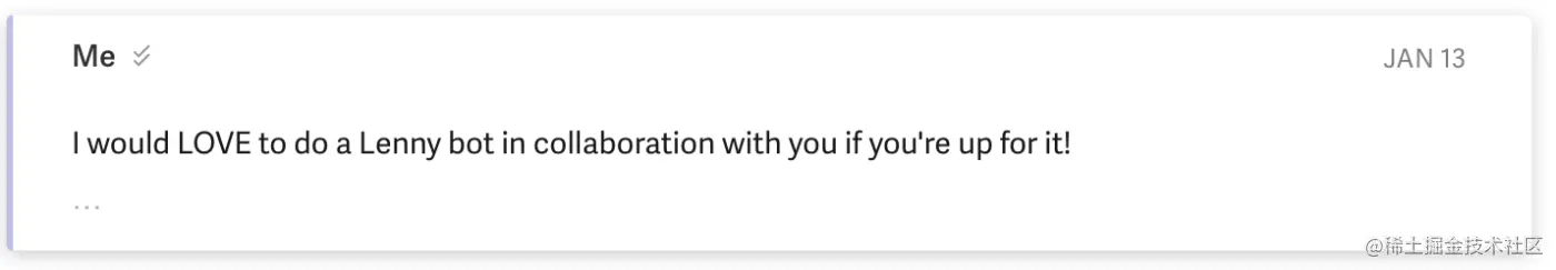 几周前的一个星期五晚上,我醒来时收到一封来自 Lenny Rachitsky 的电子邮件,他是 Lenny’s Newsletter 的作者,Lenny’s Newsletter 是 Substack 上最大的时事通讯之一。 他想知道我是如何构建我们的 Every 聊天机器人的: