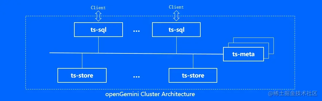 openGemini采用MPP大规模并行处理分层架构,由ts-sql、ts-store、ts-meta组成。
