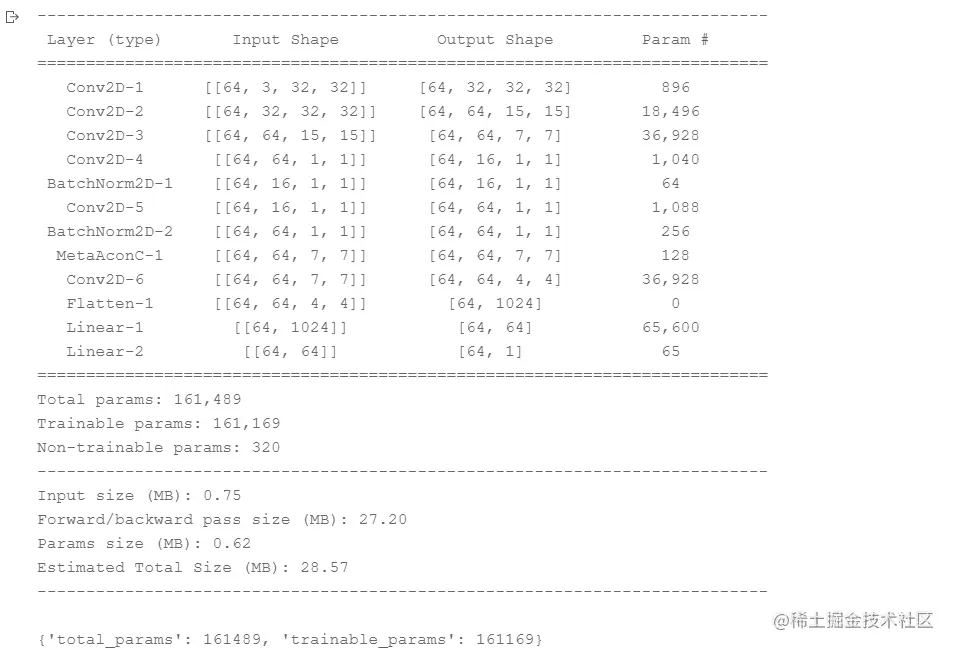 本教程主要关注于程序的具体复现,该激活函数的效果以及在各类计算机视觉任务上均未进行验证,大家可以根据自己的实际需求进行使用。对比二者的网络参数,使用了ACON-C激活函数会增加网络的参数量。在论文中提到的Meta-ACON将在下一个教程中为大家进行讲解。在本教程中,已经为大家演示了该激活函数的复现代码,以及如何应用在网络结构中。大家可以即插即用。